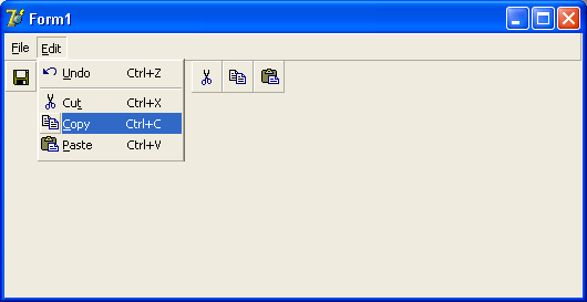 imageindex. Таким образом, все элементы управления, связанные с действием, — кнопки и пункты меню — будут иметь одну и ту же картинку, как показано на рис. 8.3. Впрочем, это относится ко всем остальным свойствам из табл. 8.1.